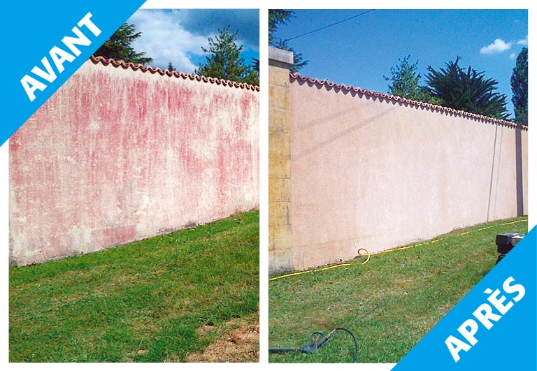 Nous recommandons de faire un essai préalable pour s’assurer de la compatibilité du produit avec le support. Sur les enduis teintés dans la masse, cet essai permettra de s’assurer d’aucune modification d’aspect du support. Il existe également un risque de dépolir le verre et les supports vitrifiés ou d’attaquer les peintures et revêtements peinture extérieurs (RPE).